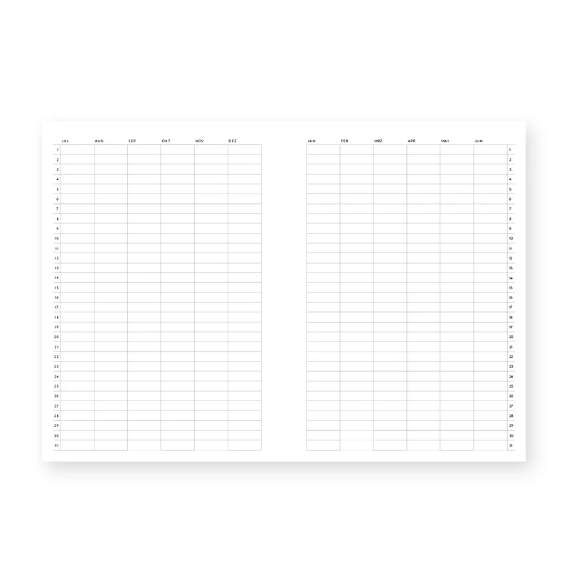 - Monatsübersichten (August 2026 bis Juli 2027)