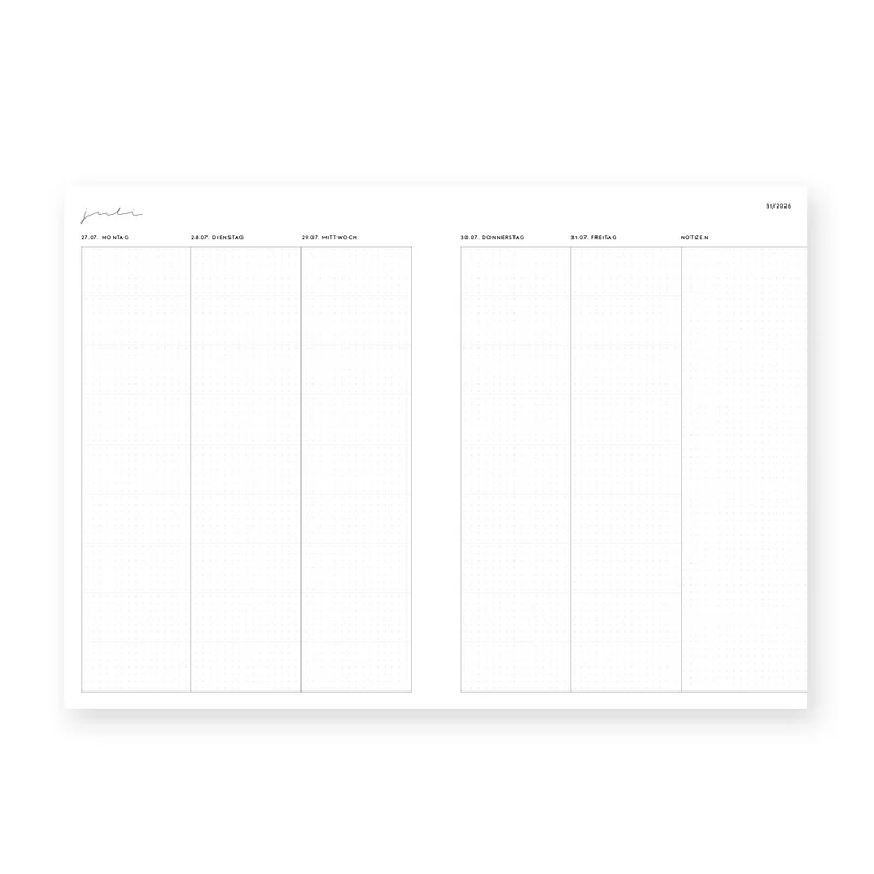 - Monatsübersichten (August 2026 bis Juli 2027)