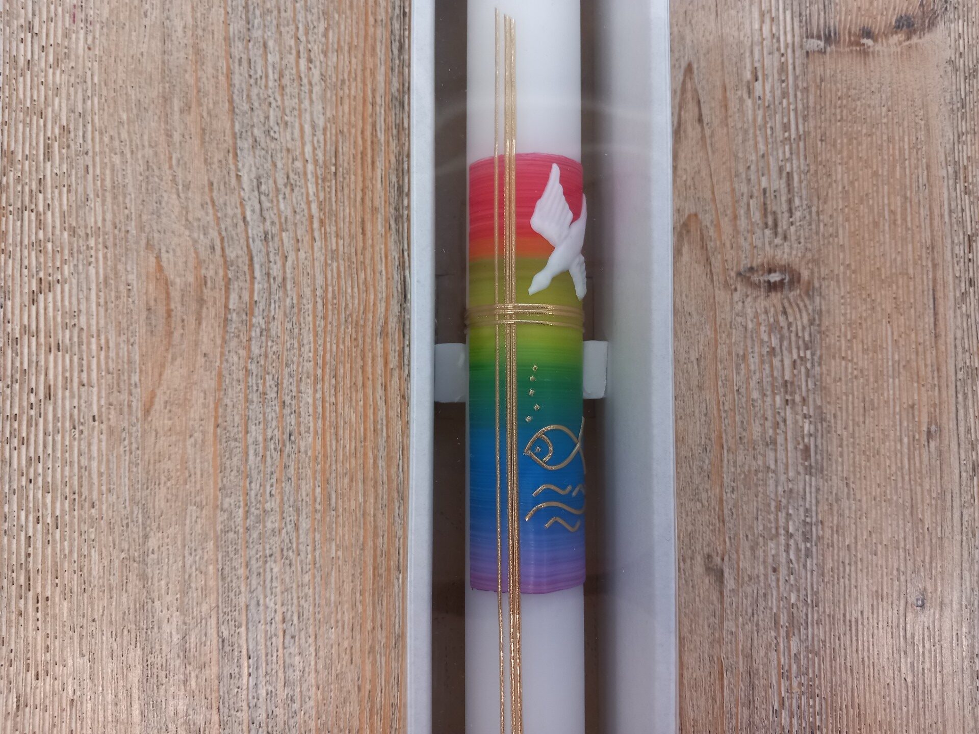 / Taufkerze „Regenbogen Taube“
