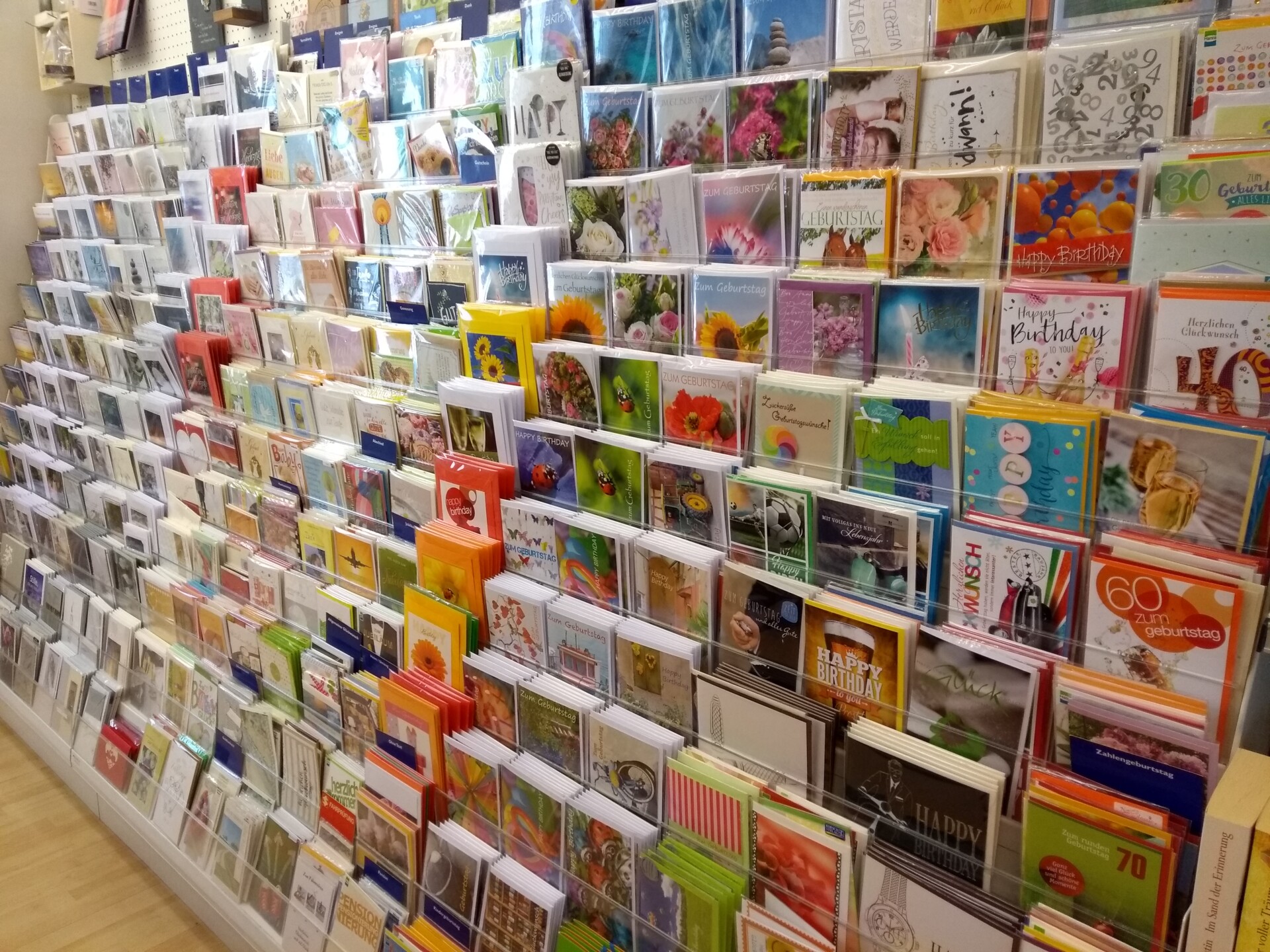 Unsere Karten sind gross, klein, extraklein, handgemalt, fotografiert, dreidimensional, aus der Region, mit lustigen Sprüchen, mit religiösen Texten, schwarzweiss oder aufklappbar. Sie passen zu Geburten, Jubiläen, Abschieden, verpassten Geburtstagen, Priesterweihen und goldenen Hochzeiten. Für jeden Anlass und jeden Geschmack ist etwas dabei in unserem umfangreichen und sich stetig verändernden Kartensortiment.